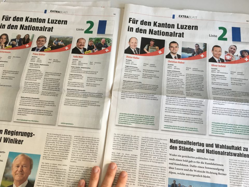 Heute finden Sie unser Extrablatt im Briefkasten. Eine spannende Zeitung mit zahlreichen prägnanten Artikeln und Interviews. Lesen Sie beispielsweise das umfangreiche Portrait von Franz Grüter, unserem Ständeratskandidaten, sowie die Portraits aller SVP-Kandidierenden jeder Liste. Schauen Sie rein, es lohnt sich!
