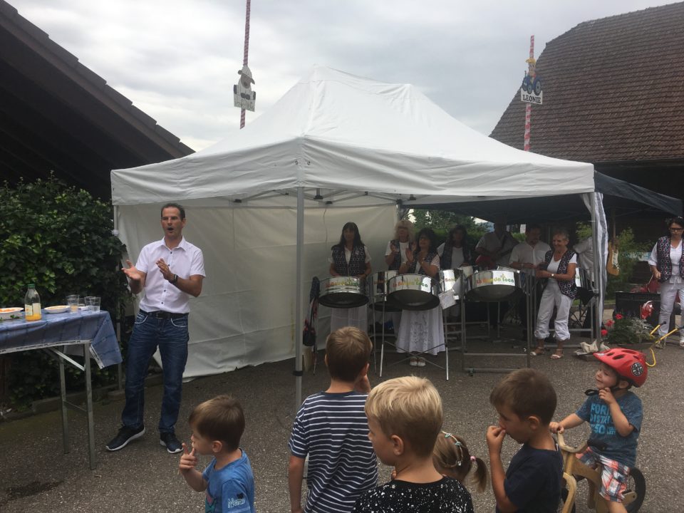 Bereits um 11 Uhr trafen Mitglieder, Interessierte und Sympathisanten auf dem schön und aufwändig dekoriertem Hof von Familie Hunkeler ein. Nach der Ansprache des neuen Präsidenten, Herr Simon Siegrist, liessen sich alle das reichhaltige Salatbuffet, die feinen Fleischspiesse und die Pommes Frites schmecken.