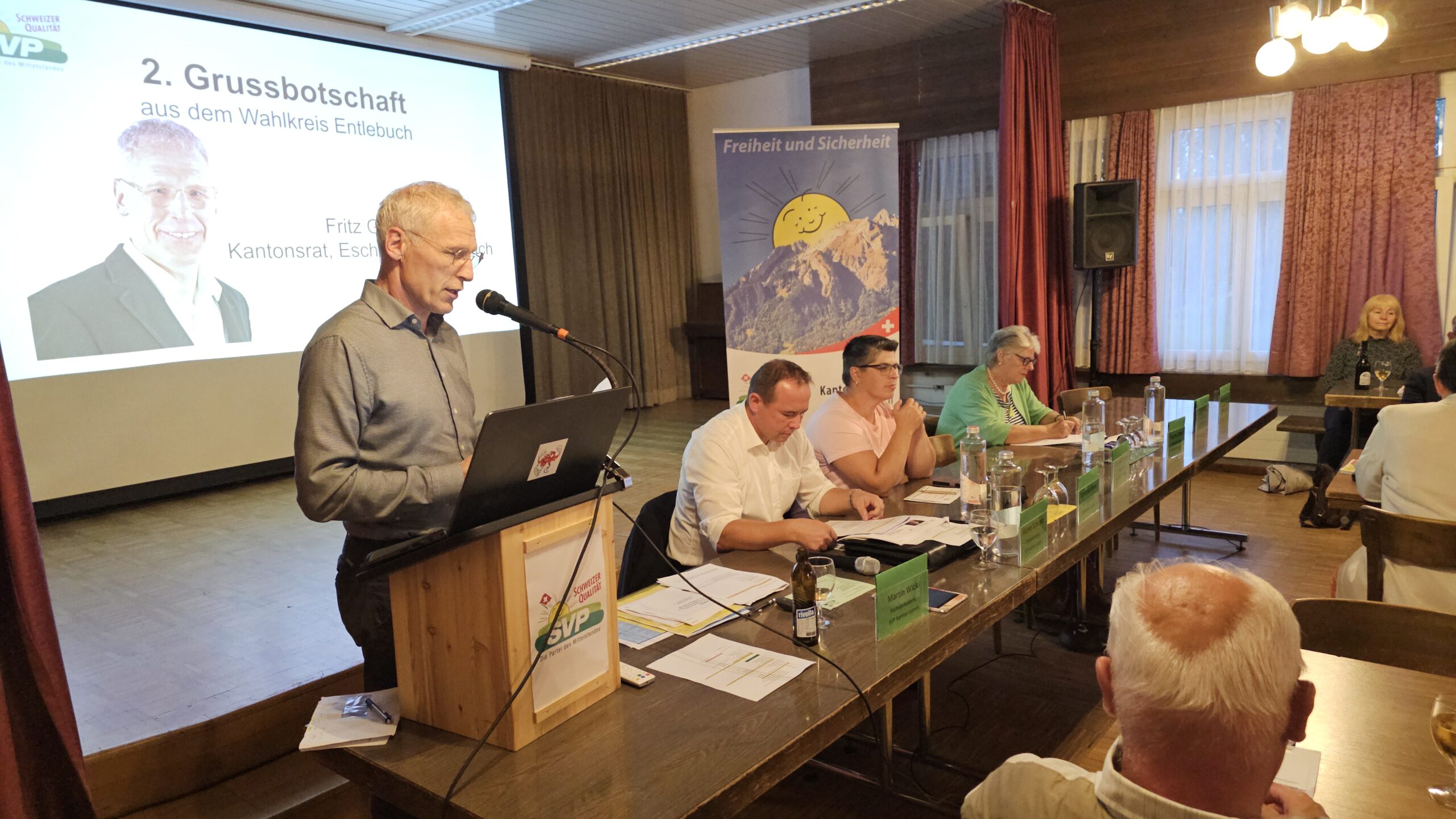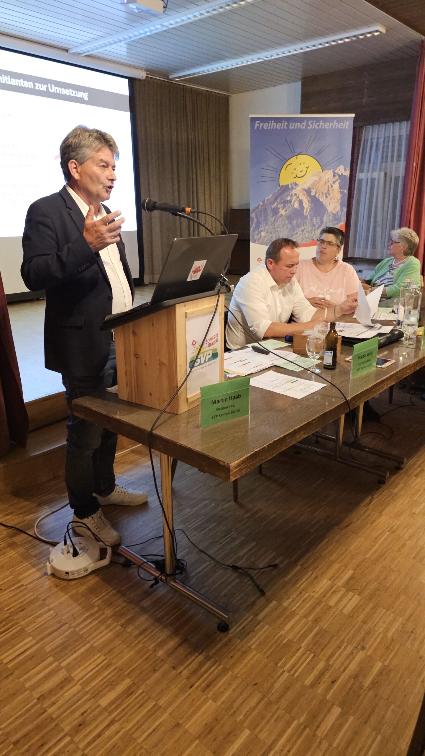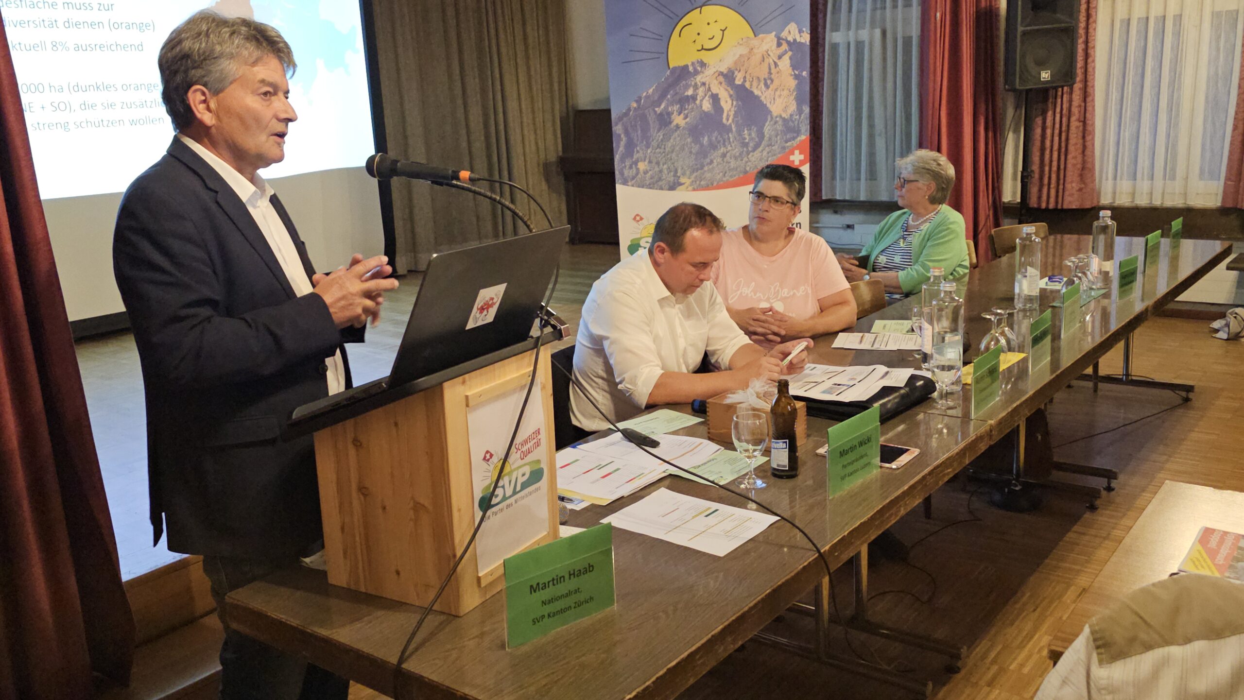 Besondere Aufmerksamkeit erhielt die Diskussion um die Biodiversitätsinitiative, die im ländlich geprägten Doppleschwand für lebhafte Reaktionen sorgte. Der Zürcher Nationalrat Martin Haab übernahm die schwierige Aufgabe, das Pro und Contra der Initiative zu präsentieren. Dabei kritisierte er, dass kein Befürworter dieser Vorlage bereit war, an der Versammlung teilzunehmen. Es sei „gschämig“, dass er erneut ohne Gegenstimme argumentieren müsse, was zeige, dass die Initiative nicht so stark sei, wie ihre Unterstützer behaupteten. Haab führte detailliert aus, warum die Initiative abzulehnen sei: Sie bringe unnötige Auflagen für die Landwirtschaft und gefährde somit die Ernährungssicherheit. Die Delegierten stimmten schliesslich einstimmig gegen die Initiative. Dies zeigte deutlich, dass die SVP fest hinter den Bauern steht und keine Experimente zulasten der Landwirtschaft und Versorgungssicherheit zulässt.