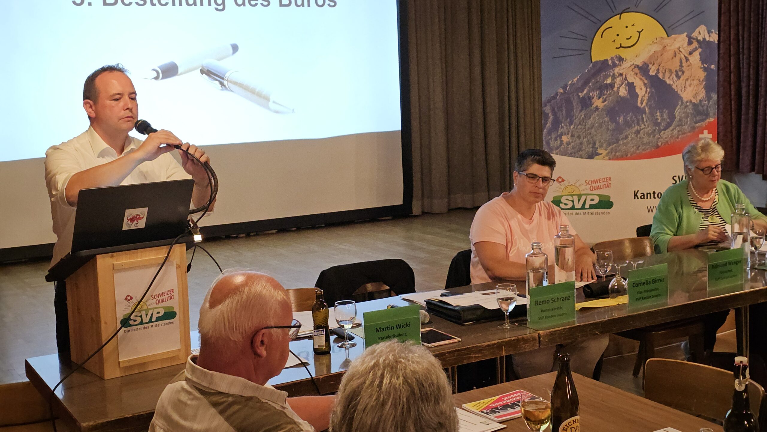 Die erste Delegiertenversammlung der SVP Kanton Luzern unter der neuen Führung von Martin Wicki am 5. September war ein starkes Zeichen für Geschlossenheit und Entschlossenheit. Der frisch gewählte Präsident Wicki machte in seiner Antrittsrede deutlich, dass er die Partei mit klarer Linie und entschlossener Hand weiterführen wird. In einer kurzen und prägnanten Ansprache fasste er die Kernanliegen der SVP zusammen: Freiheit, Sicherheit und Souveränität – Werte, für die die Partei nicht nur in Luzern, sondern auch auf nationaler Ebene unverrückbar einsteht.