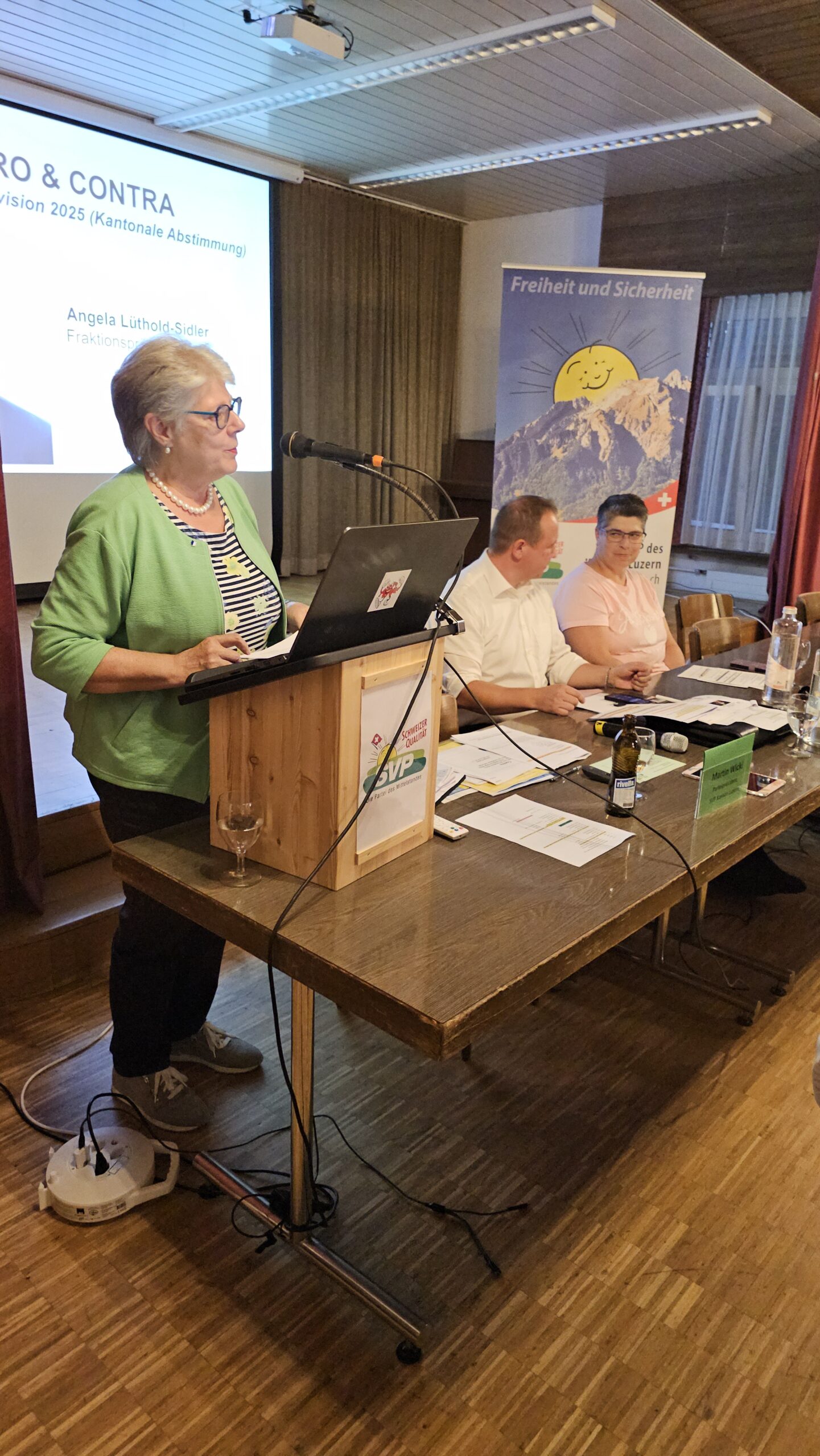 Das kantonale Thema war die Steuergesetzrevision 2025. Fraktionspräsidentin Angela Lüthold-Sidler hielt eine überzeugende Rede, in der sie betonte, dass die Revision nötig sei, um Luzern als Wirtschaftsstandort zu stärken und die Steuerlast zu senken. Die Delegierten folgten mit 91 Ja-Stimmen und einer Enthaltung, ein klares Signal für bürgernahe Finanzpolitik.