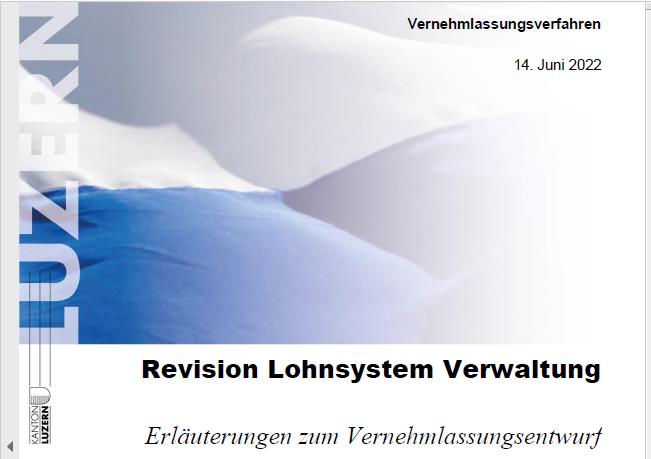 Die SVP Kanton Luzern dankt allen Beteiligten für den ausführlichen Bericht zur Vernehmlassung «Revision Lohnsystem Verwaltung» im Kanton Luzern.