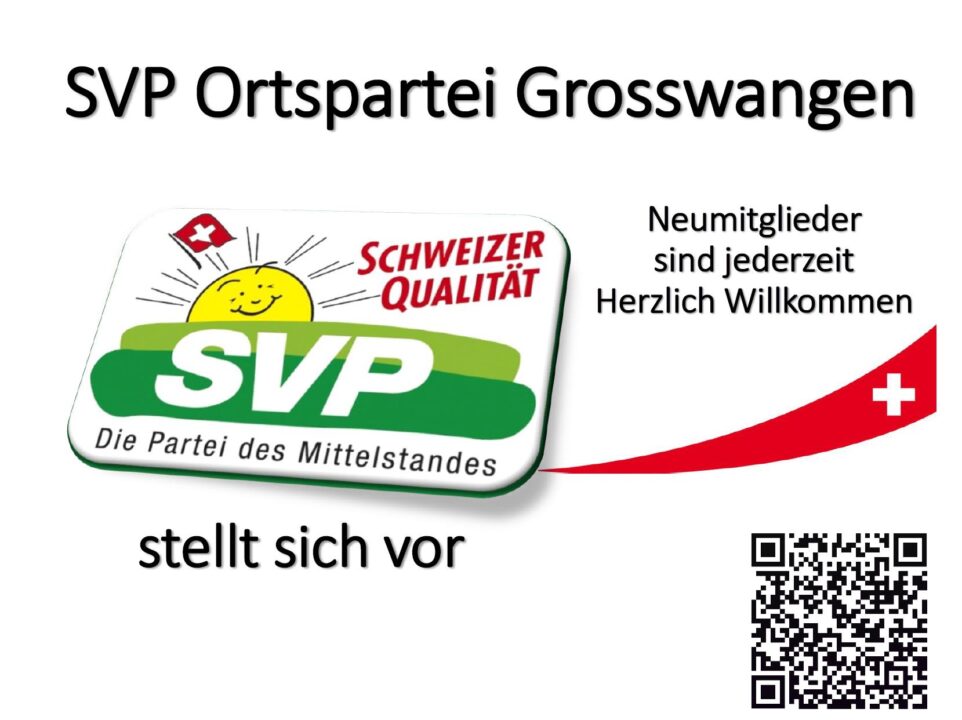 Die Schweizerische Volkspartei, Ortspartei Grosswangen, leistet aktive Mitarbeit am politischen Alltag.